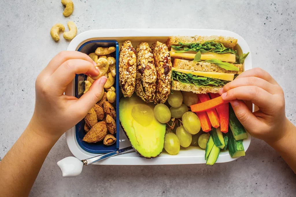 Lebovitz recommends parents and caregivers consider how much time the child will have between snacking and the next meal and where the child will be eating the snack to determine what to offer. Lebovitz also suggests keeping “a shelf-stable snack readily accessible in backpacks, purses, and cars in case of hangry emergencies.”
