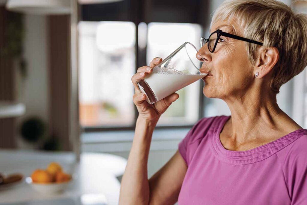 Getting enough calories and protein in the context of an anti-inflammatory diet are the big-picture priorities, but managing vitamin D and calcium intake is important, too. Buell said that because the body’s vitamin D levels can change throughout the year, many people may need to rely more on supplementation during the winter months. She cautioned that calcium intake has a clearly defined upper limit of safety—2,000 to 3,000 mg/day for children and adults, depending on life stage—so more overall intake isn’t always better. When using calcium supplements, absorption is best with doses of 500 mg or less at one time.12 Buell said getting calcium from dairy products or fortified plant milks is ideal because it naturally spreads intake throughout the day: “Even if you could cut down to taking one calcium pill a day and get the rest of it from your diet, [that] would be a nice in-between.”